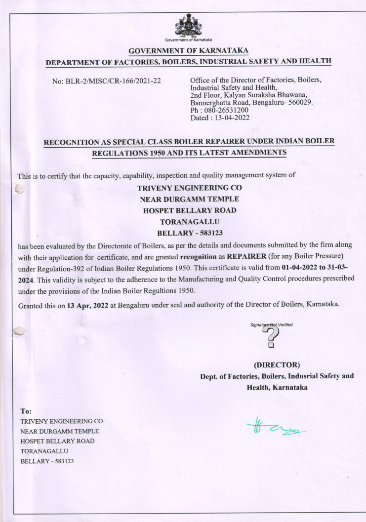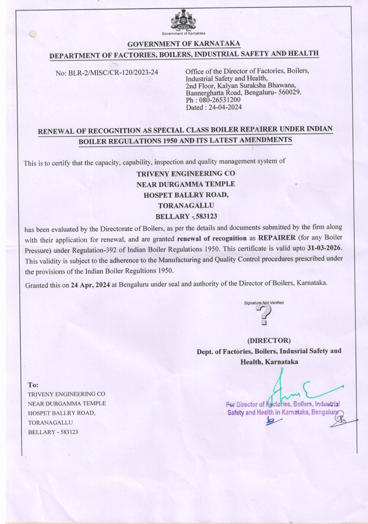 Near Durgamma Temple, Hospet-Bellary Road, Toranagallu(P.O), Bellary(Dt.),Karnataka - 583123