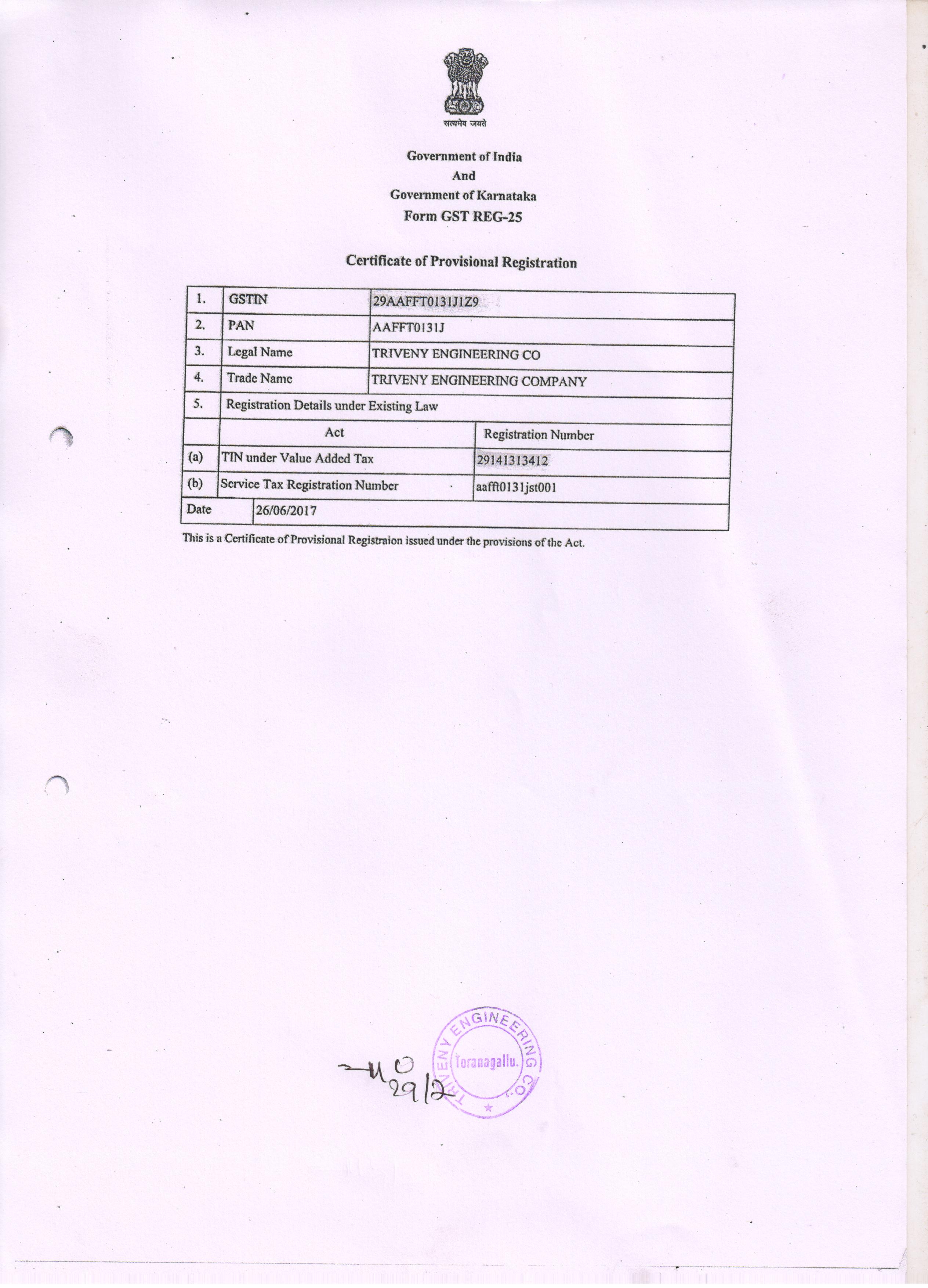 GST Registration Certificate